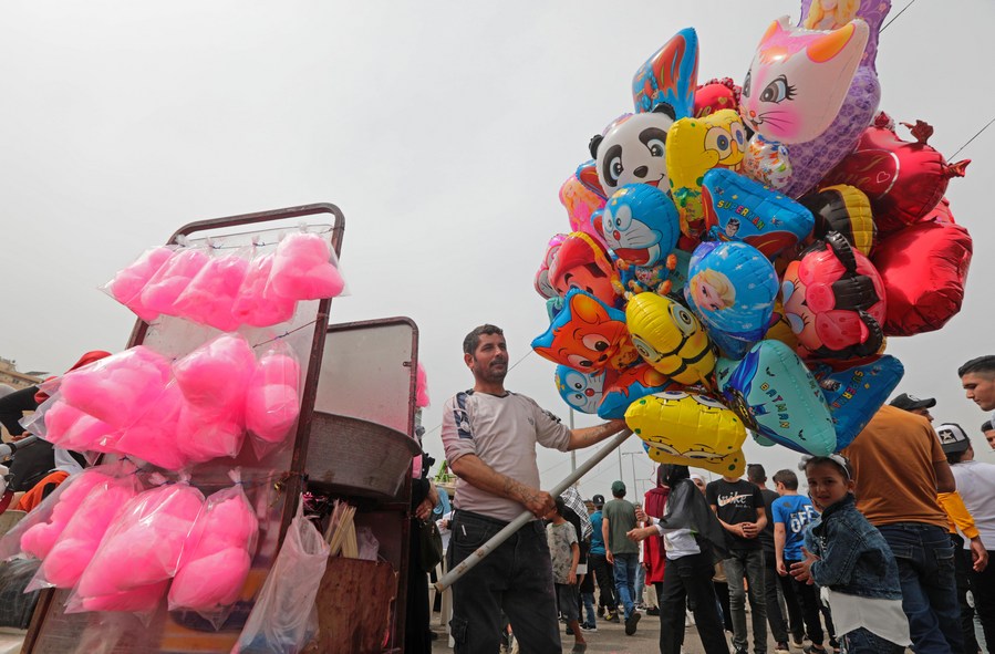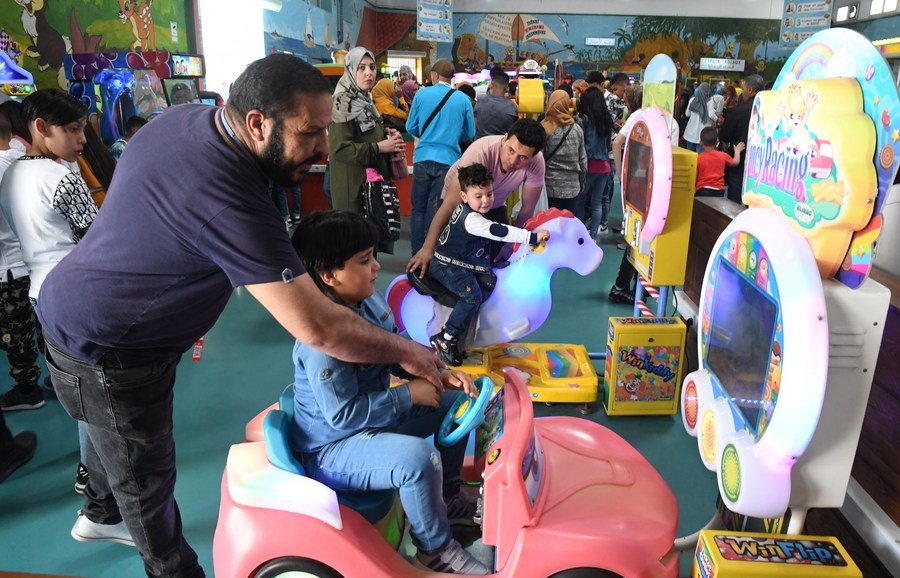 CAIRO, May 2 (Xinhua) -- Children across the Middle East are having great time during this year's Eid al-Fitr, a festival of breaking the fast that marks the end of the Muslim holy month of Ramadan.