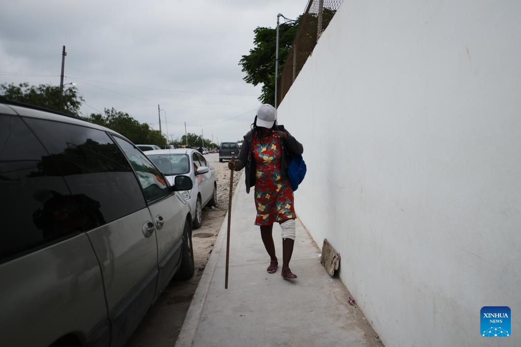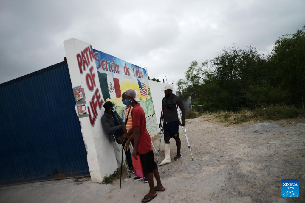 A wounded migrant walks at a shelter near the Mexico-U.S. border in Reynosa, Tamaulipas, Mexico, May 3, 2022. (Xinhua/Xin Yuewei)
