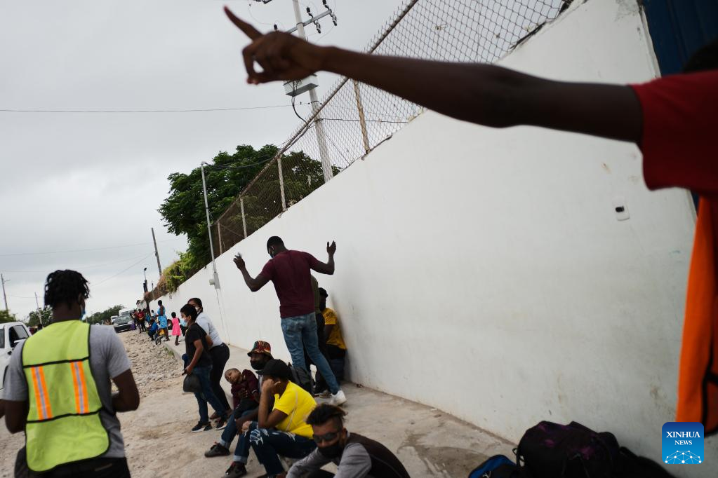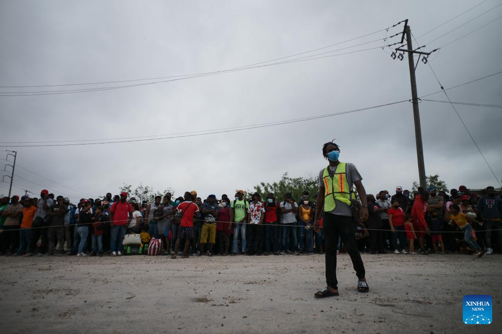 Migrants wait outside a shelter near the Mexico-U.S. border in Reynosa, Tamaulipas, Mexico, May 3, 2022. (Xinhua/Xin Yuewei)