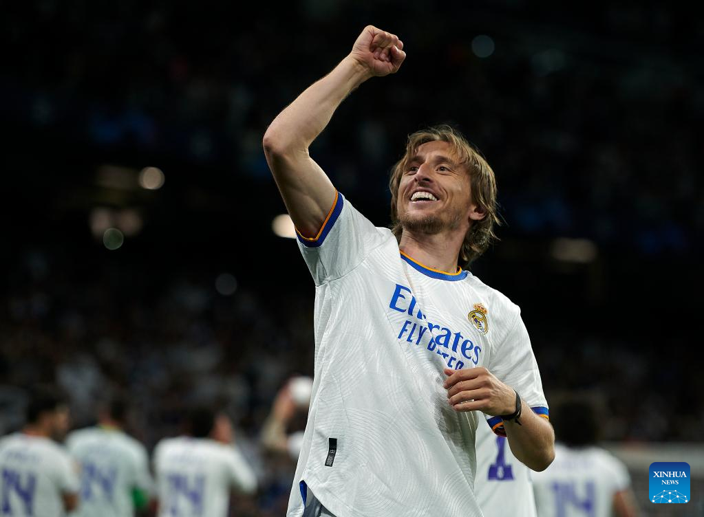 Real Madrid's Luka Modric celebrates the victory after the UEFA Champions League semifinal second leg football match between Real Madrid of Spain and Manchester City of England in Madrid, Spain, May 4, 2022. (Photo by Pablo Morano/Xinhua)