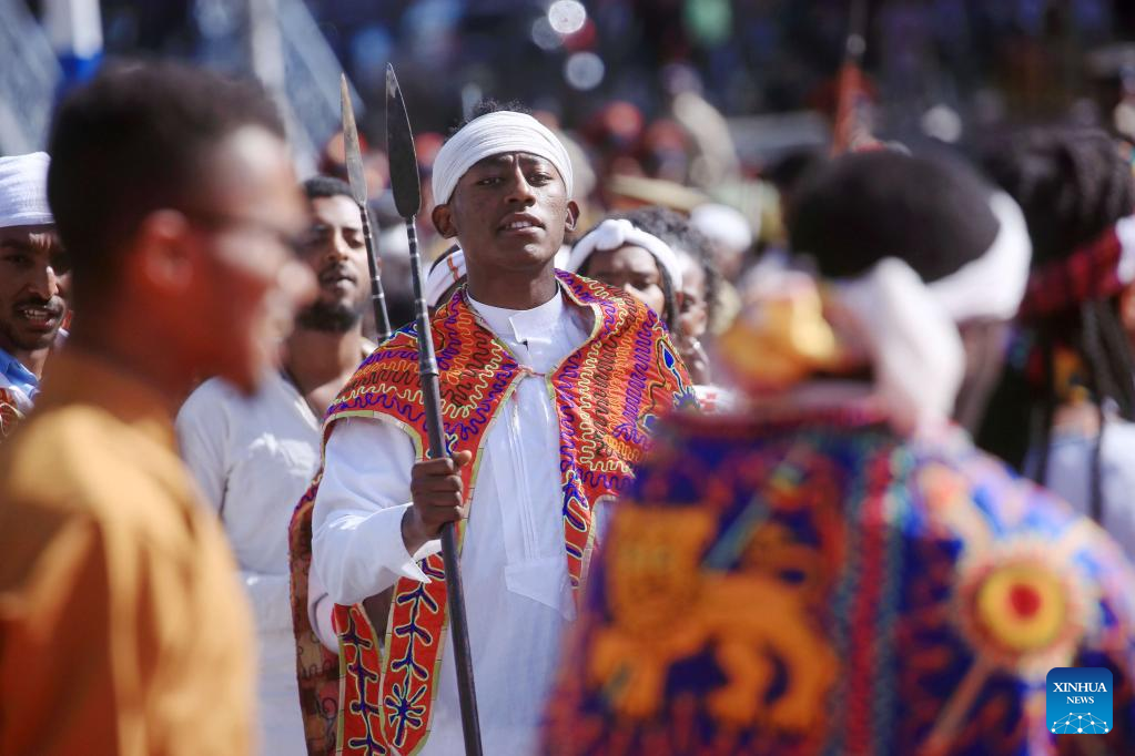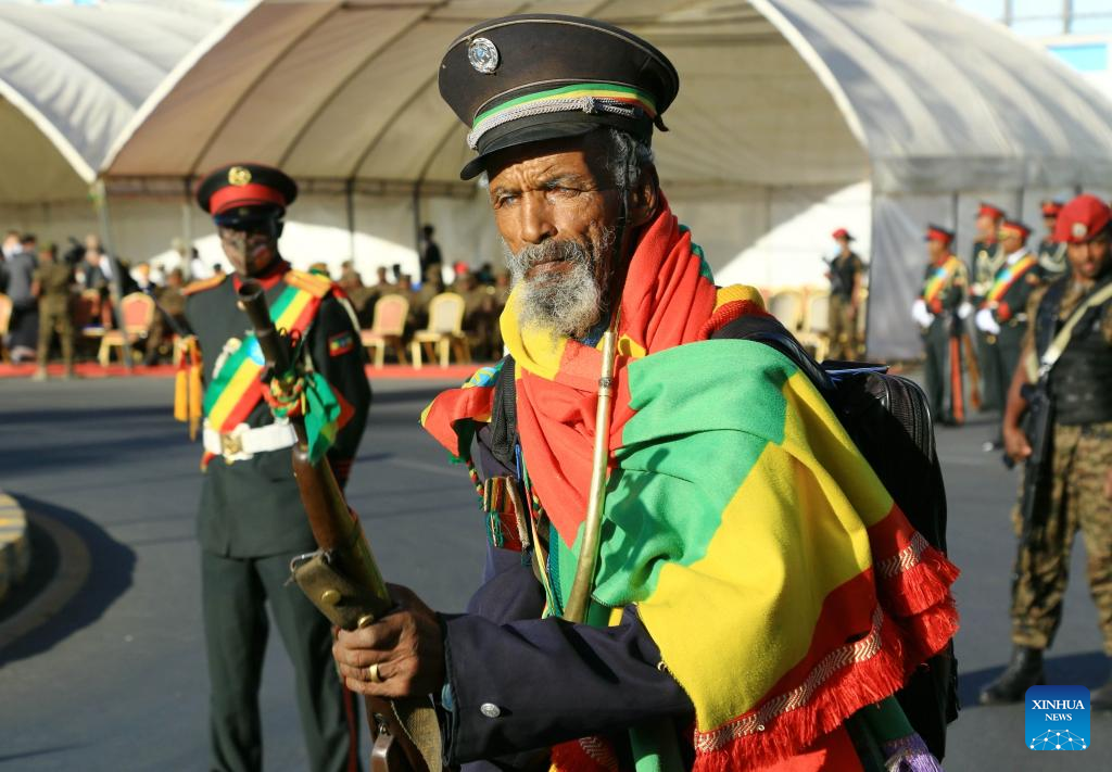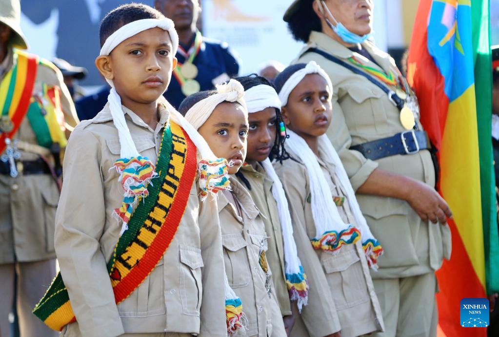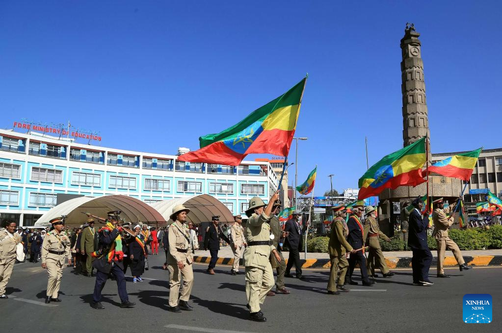 Ethiopians celebrate the Patriots Victory Day, which marks the fight of gallant Ethiopian patriots against the then Italian forces and the end of the five-year occupation in the East African country in 1941, in Addis Ababa, Ethiopia, May 5, 2022. (Str/Xinhua)