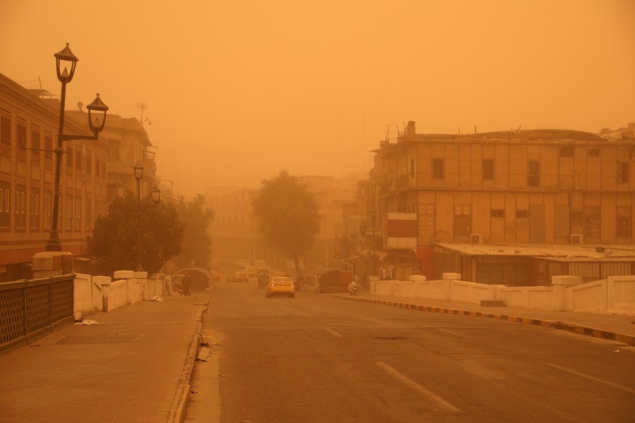 A dust storm hit Baghdad, Iraq, on May 5, 2022. (Xinhua/Khalil Dawood)