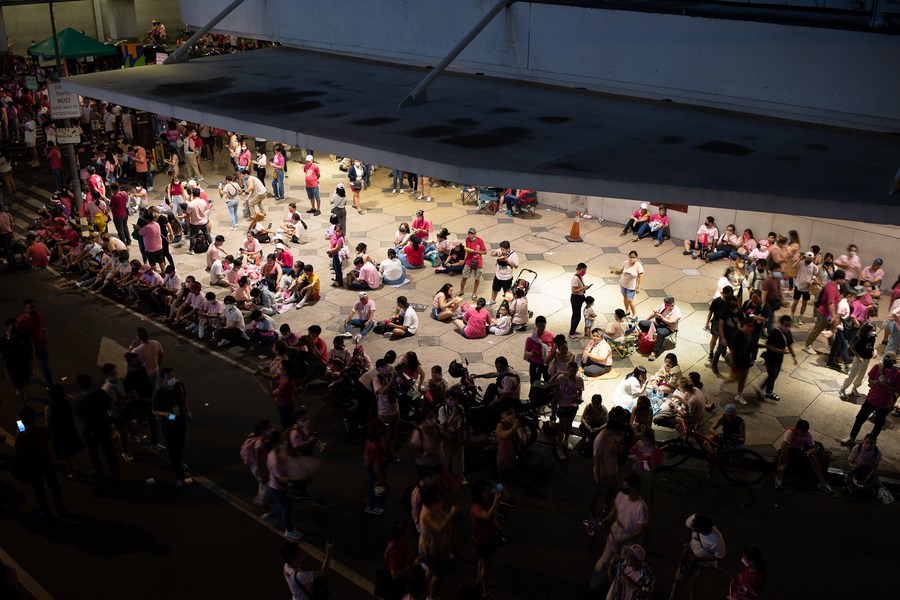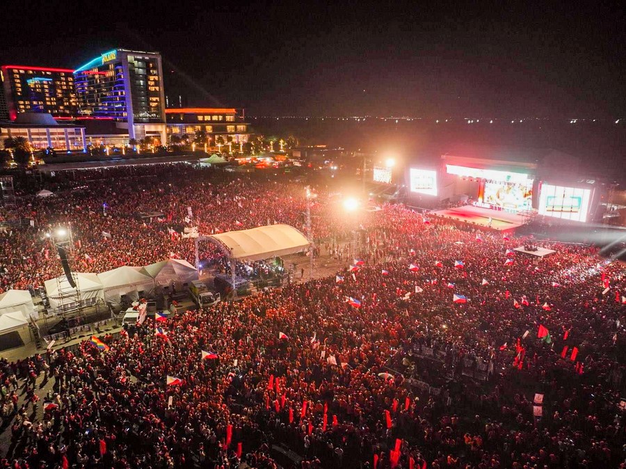 Supporters of presidential candidate Ferdinand Marcos Jr. are seen during his final campaign rally for the 2022 national and local elections in Paranaque City, the Philippines, May 7, 2022. (Ferdinand Marcos Jr. Media/Handout via Xinhua)