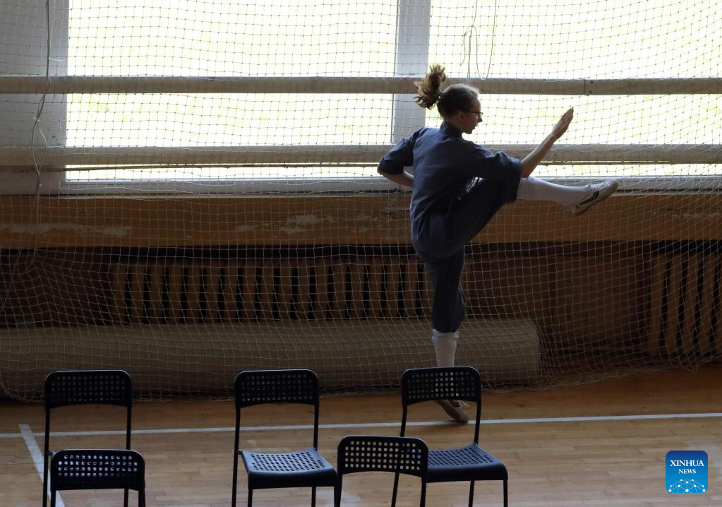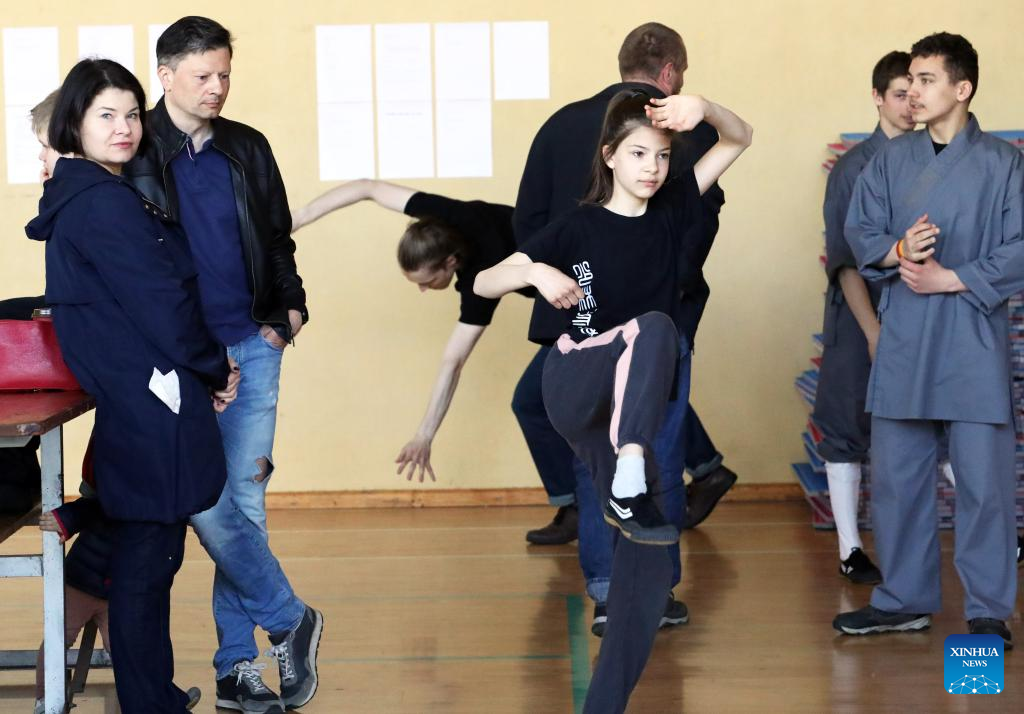 Athletes prepare at the Vilnius Open Wushu Cup in Vilnius, Lithuania, on May 7, 2022. The Vilnius Open Wushu Cup opened on Saturday, drawing more than 50 students from local wushu clubs. (Xinhua/Xue Dongmei)