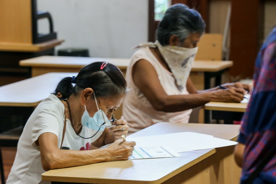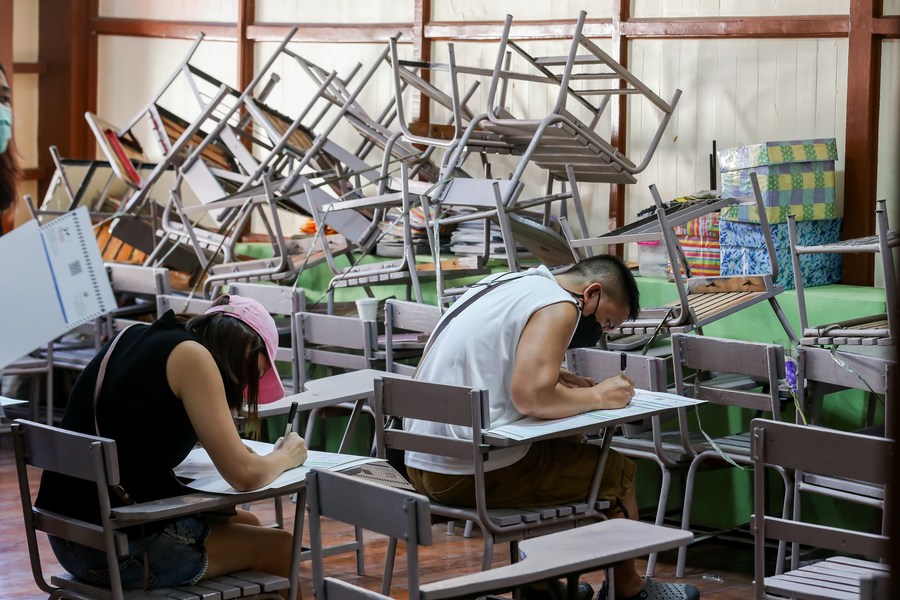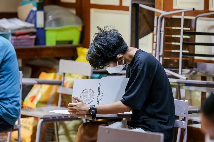 Residents cast their votes at a school-turned polling center in Manila, the Philippines, May 9, 2022. (Photo by Rouelle Umali/Xinhua)