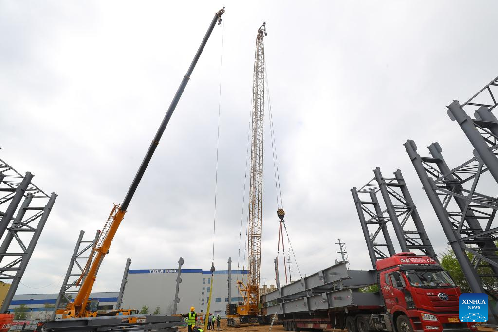 Photo taken on May 11, 2022 shows the construction site of a power transformer project in Shenyang, northeast China's Liaoning Province.