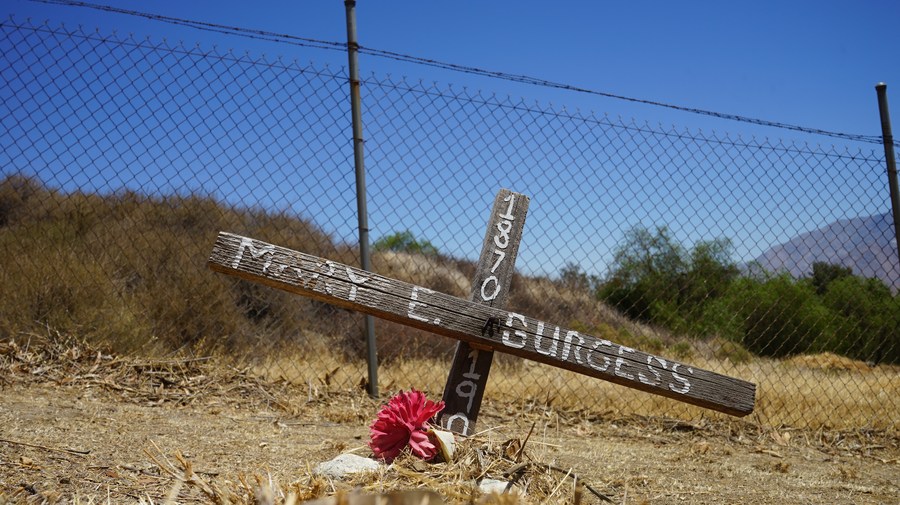 Photo taken on July 6, 2021 shows the St. Boniface Indian Industrial School Cemetery in Banning, San Bernardino County, California, the United States. (Photo by Zeng Hui/Xinhua)