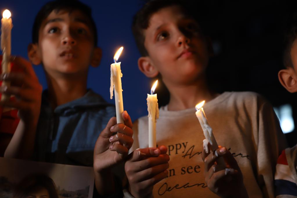 Children take part in a candlelight vigil to condemn the killing of Al-Jazeera journalist Shireen Abu Akleh in Gaza City, on May 11, 2022. Al-Jazeera journalist Shireen Abu Akleh was killed in the northern occupied West Bank on Wednesday morning. (Photo by Rizek Abdeljawad/Xinhua)