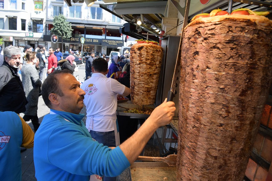 Photo taken on May 10, 2022 shows Turkish kebab in Istanbul, Turkey. According to data released by the Turkish Statistical Institute, Turkey's consumer price index (CPI), a main gauge of inflation, jumped 69.97 percent in April compared with the previous year, the biggest year-on-year increase since 2002. (Xinhua/Shadati)
