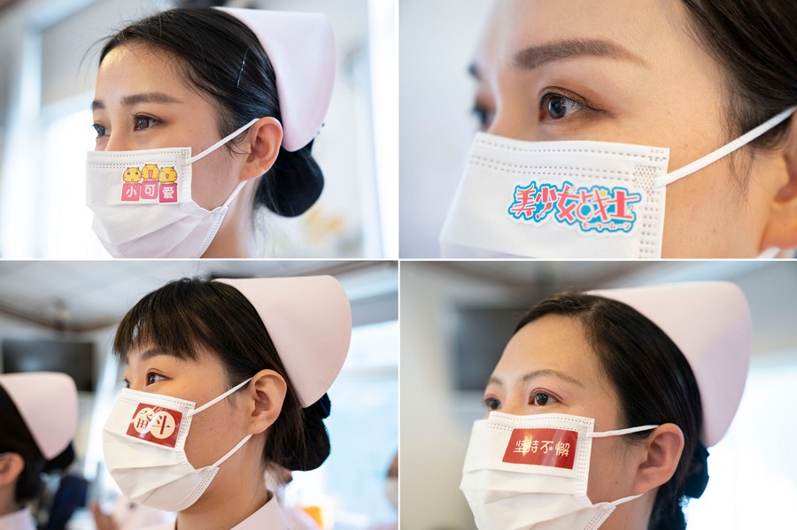 Combo photo taken on May 11, 2022 shows medical staff members participating in an event to celebrate the International Nurses Day at Beijing massage hospital in Beijing, capital of China. May 12 marks International Nurses Day. (Xinhua/Cai Yang)