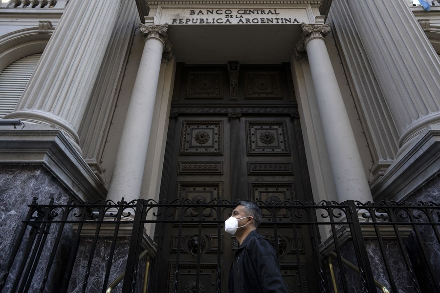 A man passes by the Central Bank of Argentina in Buenos Aires, Argentina, Aug. 4, 2020. (Photo by Martin Zabala/Xinhua)