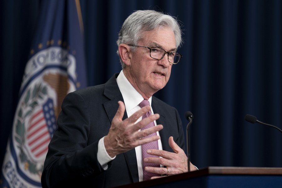 U.S. Federal Reserve Chair Jerome Powell attends a press conference in Washington, D.C., the United States, on May 4, 2022. (Xinhua/Liu Jie)