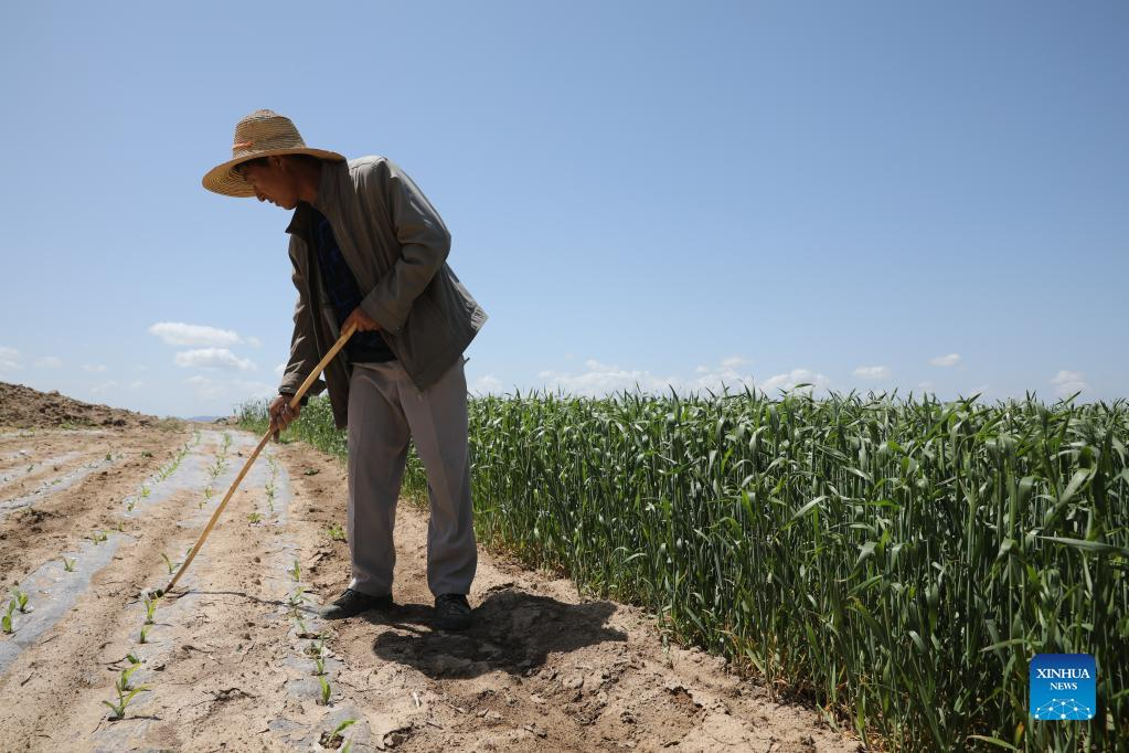 A farmer works in fields of reclaimed farmland in Qinzhou District of Tianshui, northwest China's Gansu Province, May 11, 2022. In recent years, Qinzhou of Tianshui has been encouraging enterprises, cooperatives and family farms to reclaim abandoned farmland. So far, over 73,000 mu (about 4,867 hectares) abandoned farmland has been reclaimed in Qinzhou. (Xinhua/Wang Zixuan)