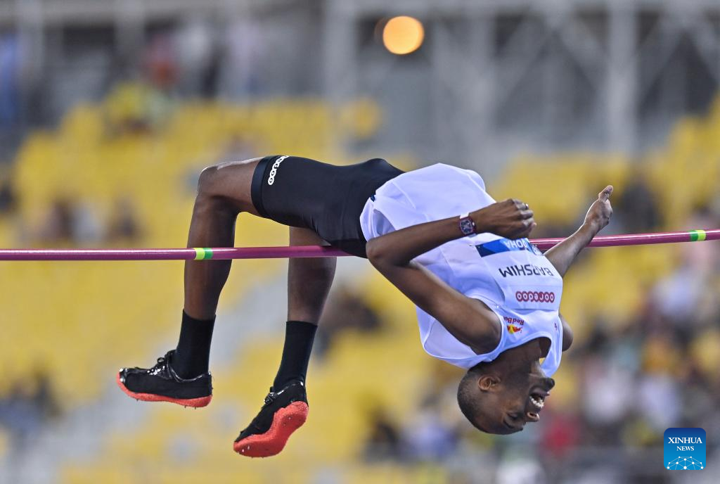 Mutaz Essa Barshim of Qatar competes during the men's high jump at the 2022 Diamond League athletics meeting at Suhaim bin Hamad Stadium in Doha, capital of Qatar, May 13, 2022. (Photo by Nikku/Xinhua)