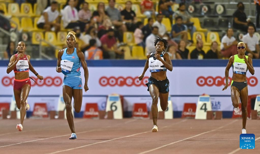 Marileidy Paulino (2nd R) of Dominican Republic competes during the women's 400m race at the 2022 Diamond League athletics meeting at Suhaim bin Hamad Stadium in Doha, capital of Qatar, May 13, 2022. (Photo by Nikku/Xinhua)