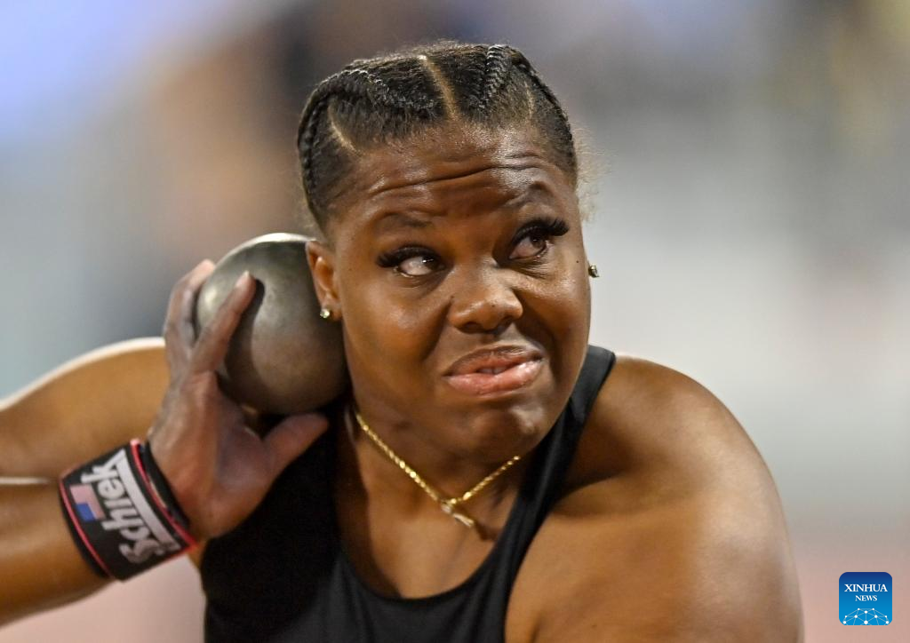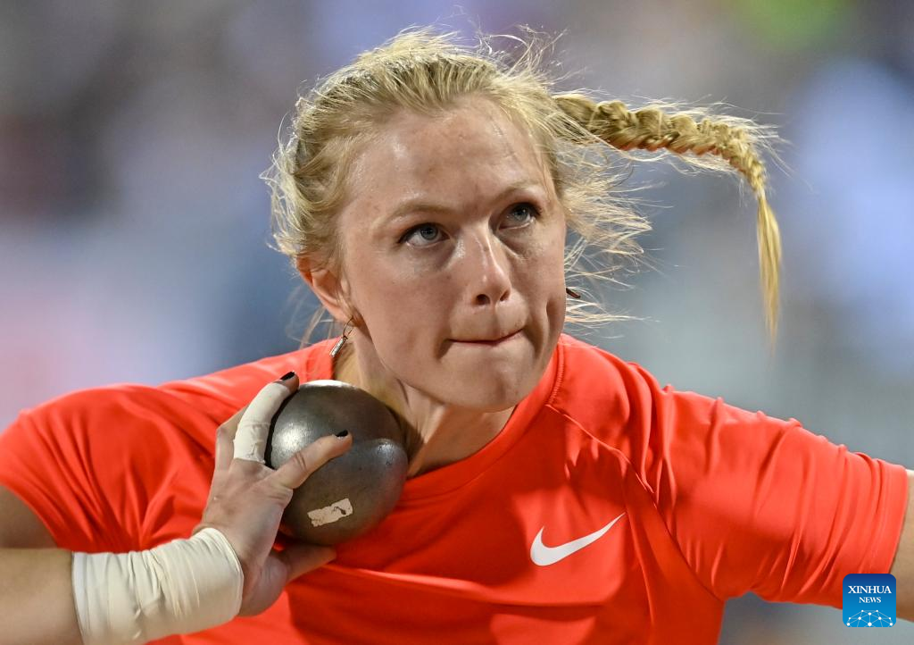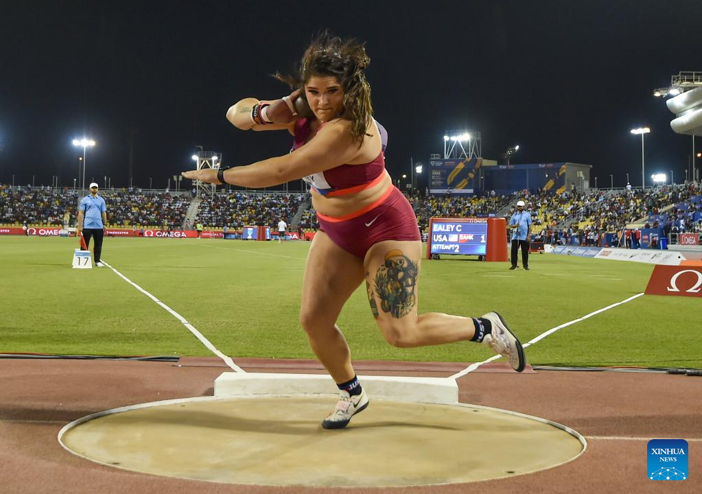 Chase Ealey of the United States competes during the women's shot put at the 2022 Diamond League athletics meeting at Suhaim bin Hamad Stadium in Doha, capital of Qatar, May 13, 2022. (Xinhua/Nikku)