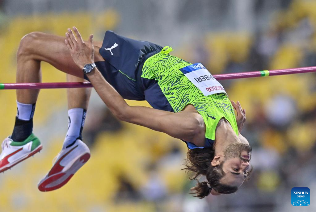 Gianmarco Tamberi of Italy competes during the men's high jump at the 2022 Diamond League athletics meeting at Suhaim bin Hamad Stadium in Doha, capital of Qatar, May 13, 2022. (Photo by Nikku/Xinhua)