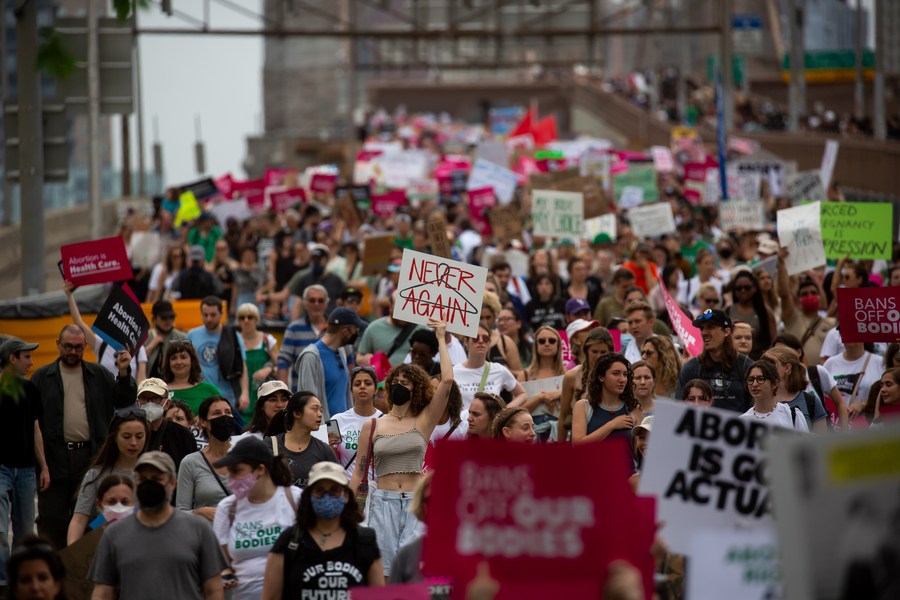 Video: Demonstrators descended on Washington D.C., and other places across the United States on May 14, 2022, as the ongoing abortion rights debates continue to be galvanized. (Xinhua)
