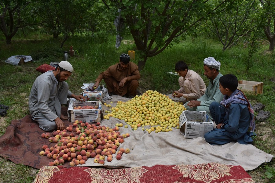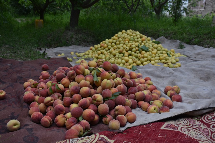 Photo taken on May 14, 2022 Shows fruit collected in an orchard in Balkh Province, Afghanistan, May 14, 2022. (Photo by Kawa Basharat/Xinhua)