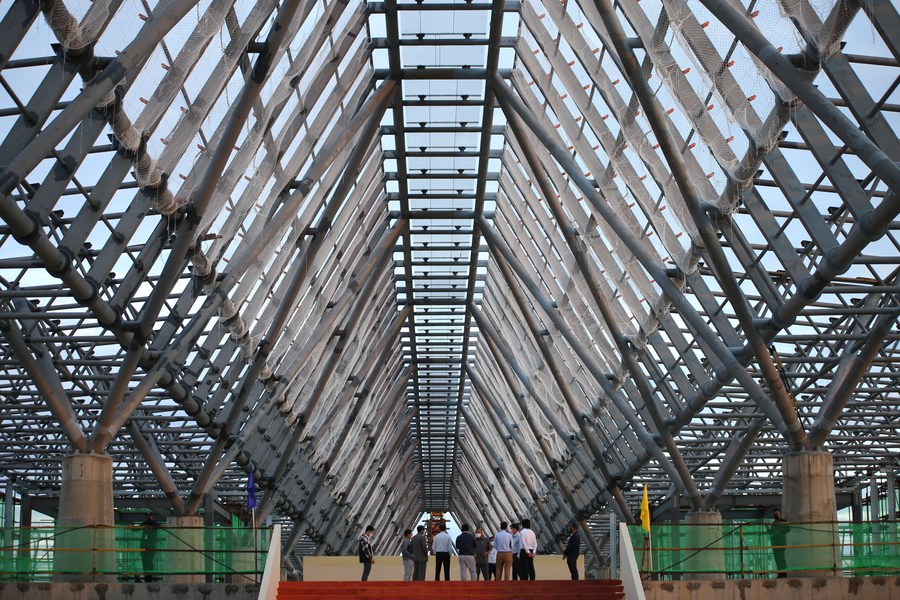 Photo taken on April 3, 2022 shows the steel structure of Chinese-invested Siem Reap Angkor International Airport in Sotr Nikum district, about 40 km from the UNESCO listed Angkor Archaeological Park and 50 km from Siem Reap provincial town, Cambodia. (Photo by Ly Lay/Xinhua)