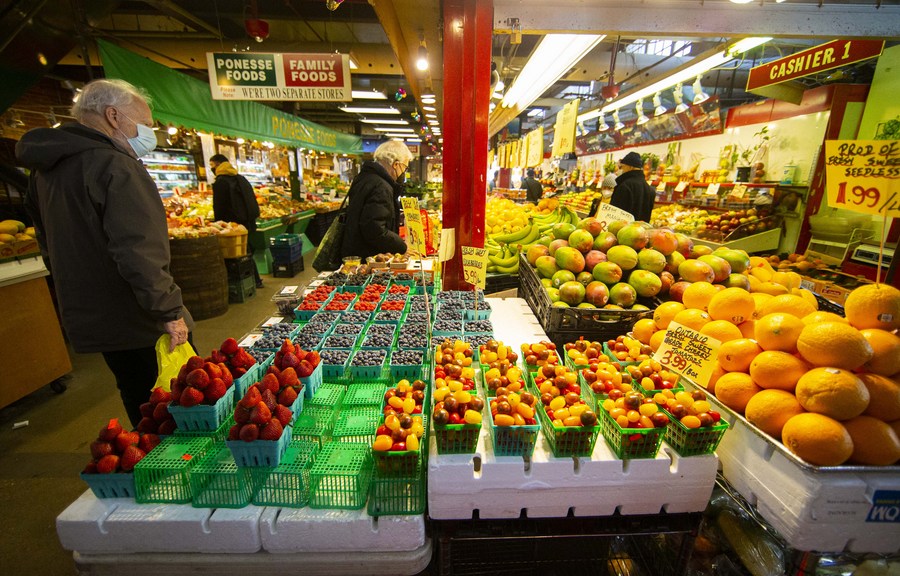 Customers shop at a market in Toronto, Canada, April 20, 2022.(Photo by Zou Zheng/Xinhua)
