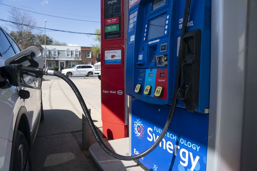A vehicle is fueled at a gas station in Arlington, Virginia, the United States, on April 12, 2022. (Xinhua/Liu Jie)