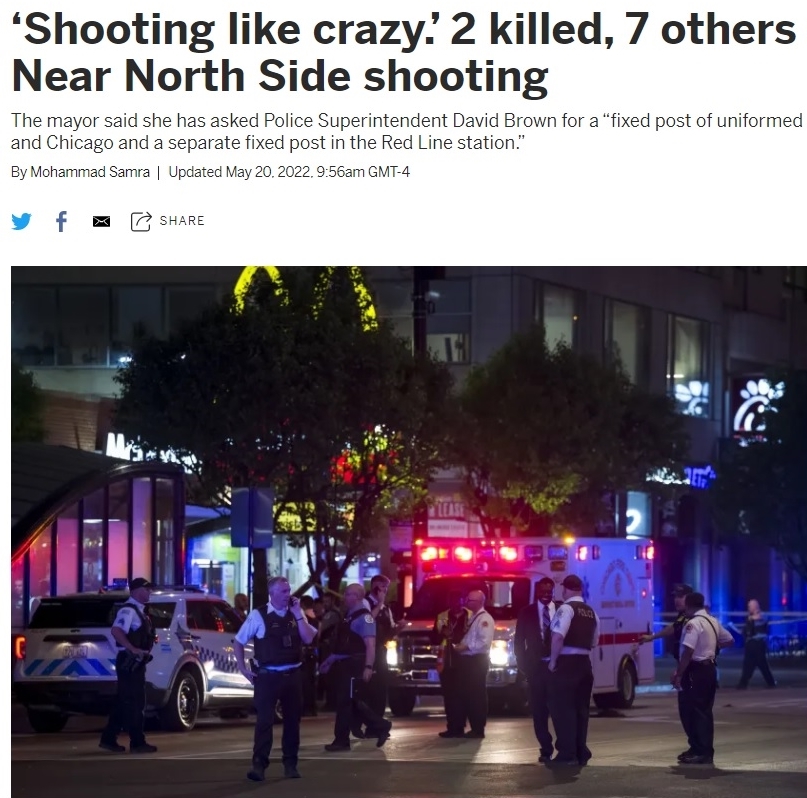 The screenshot taken from the website of the Chicago Sun-Times shows the title and photo of the news portal's latest report of the mass shooting that resulted from a brawl among a group of teenagers in downtown Chicago late Thursday. (Xinhua)