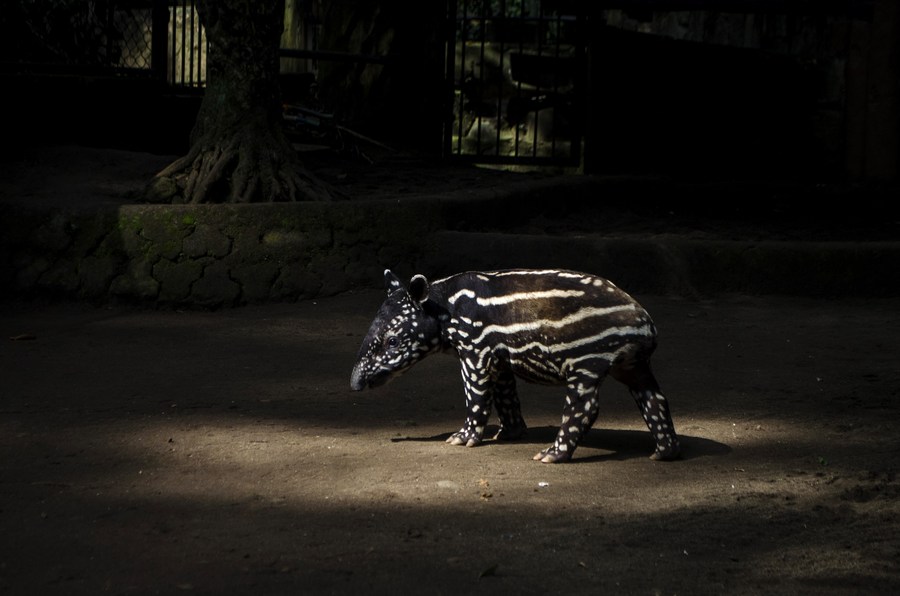 A baby Tapir is seen at Bandung Zoological Garden, in West Java, Indonesia. May 20, 2022. (Photo by Septianjar/Xinhua) ■