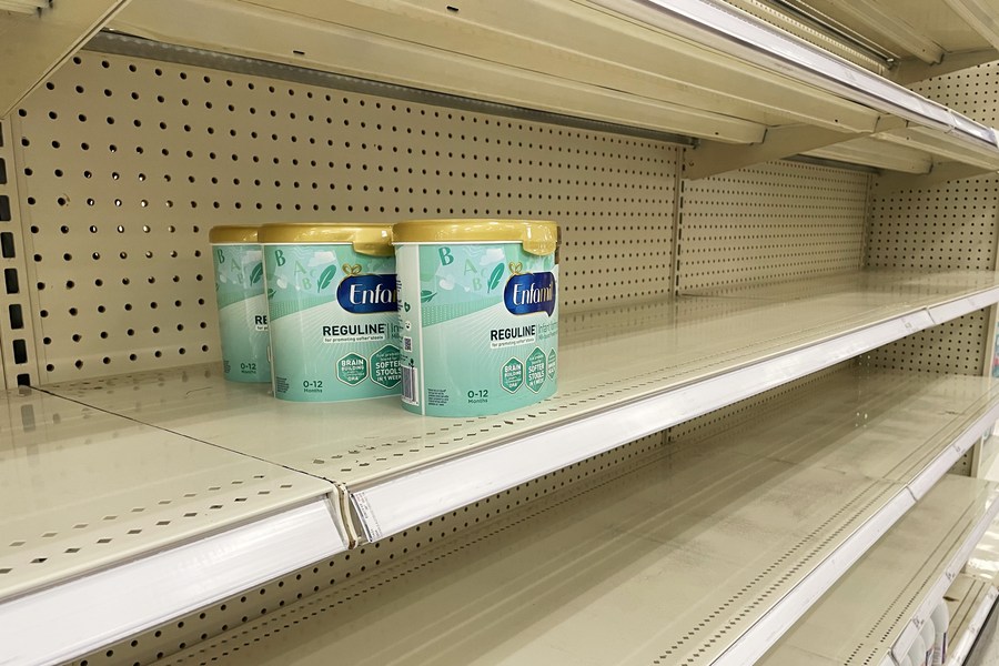 Photo taken on May 13, 2022 shows shelves of baby formula at a store in Virginia, the United States. (Xinhua/Liu Jie)