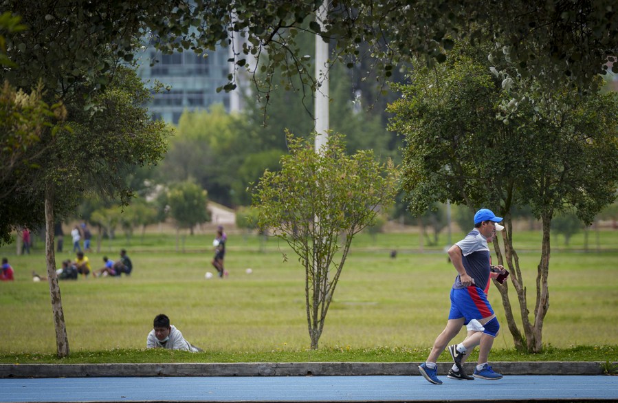People jog through La Carolina park, in Quito, capital of Ecuador, on April 29, 2022. (Xinhua/Santiago Armas)