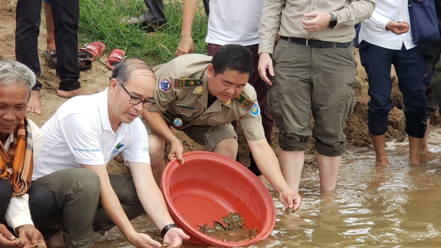 Wildlife Conservation Society (WCS) Cambodia and Cambodia's Fisheries Administration jointly released them in order to celebrate World Turtle Day, the WCS said.