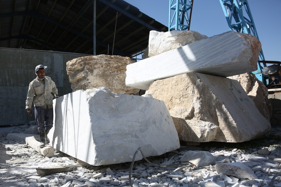A man works at a stone processing plant in Kabul, Afghanistan, May 23, 2022.(Photo by Saifurahman Safi/Xinhua)
