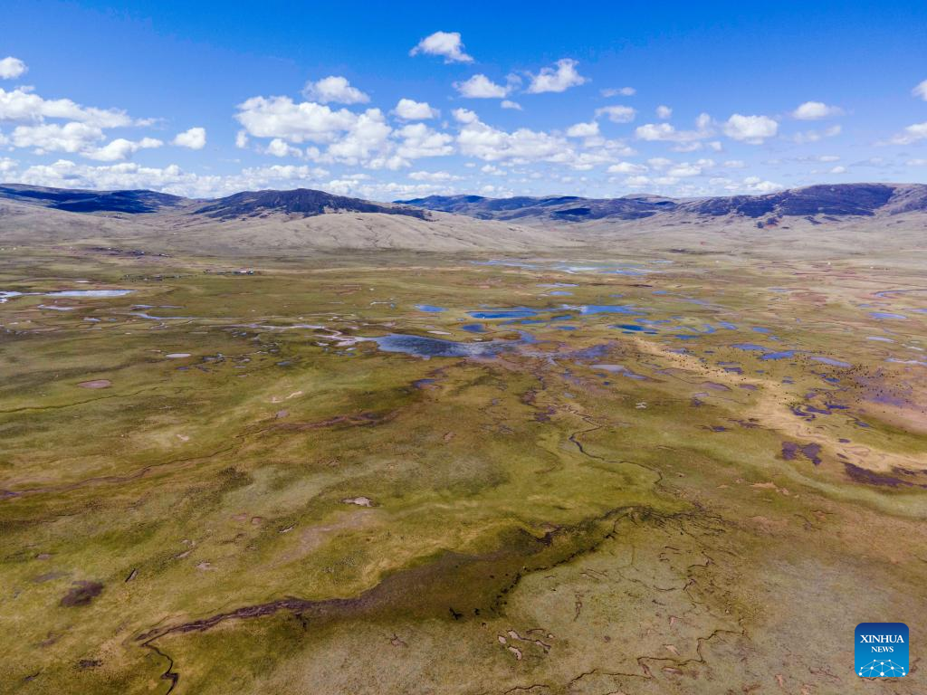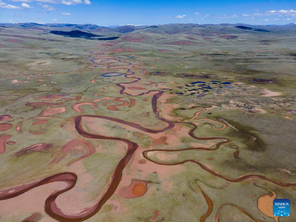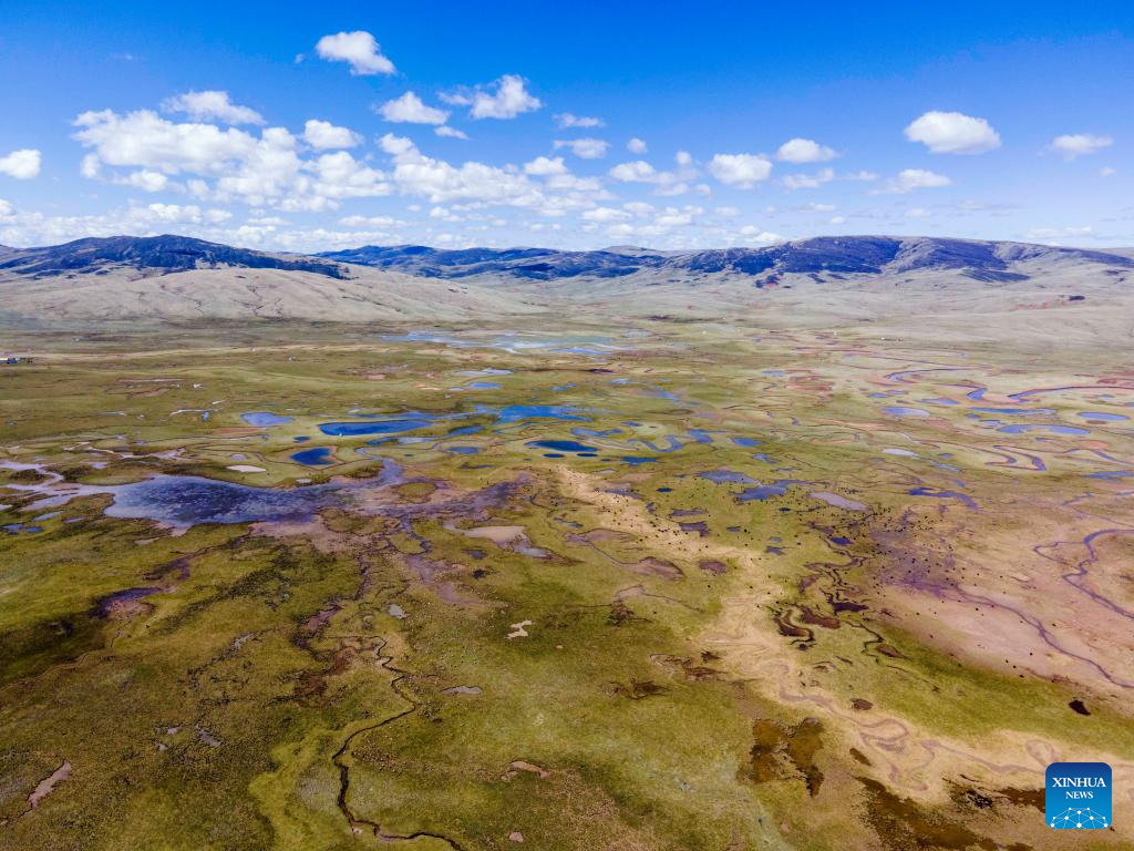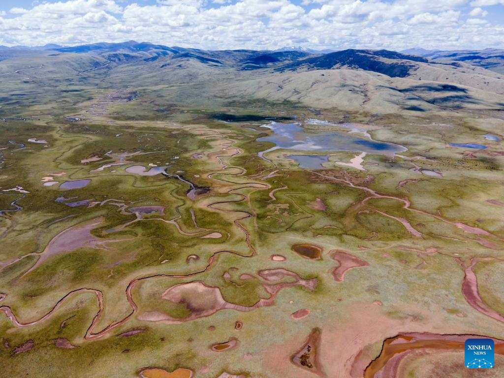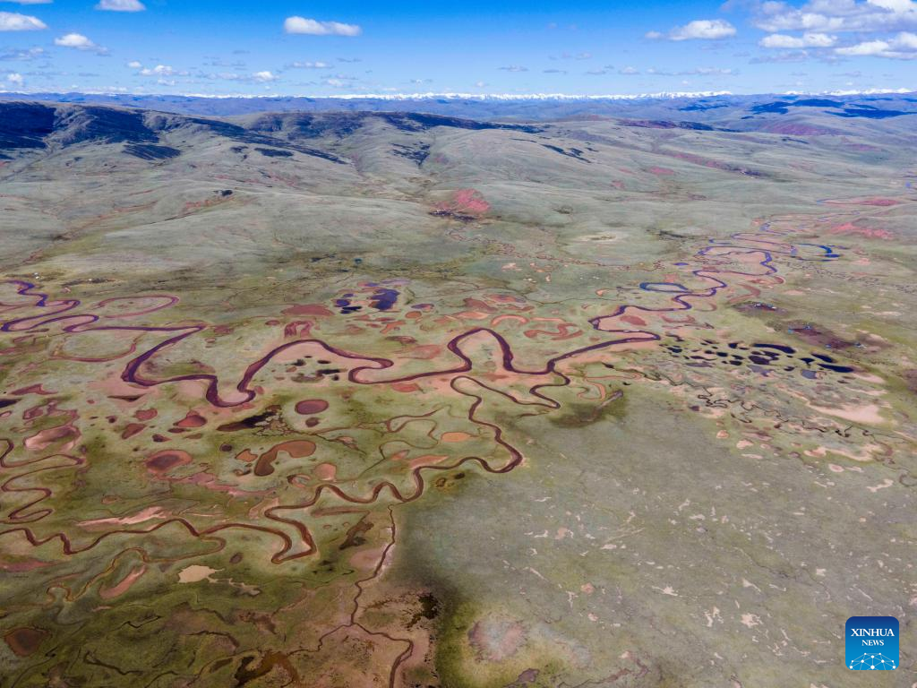 Aerial photo taken on May 25, 2022 shows the view of Lhato wetland in Konjo County of Qamdo, southwest China's Tibet Autonomous Region. (Xinhua/Fan Fan)