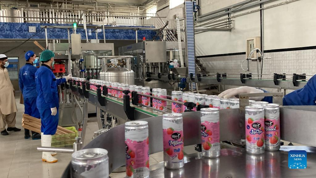 Workers work at a juice processing plant in Kandahar, Afghanistan on May 23, 2022. (Photo by Arghand/Xinhua)