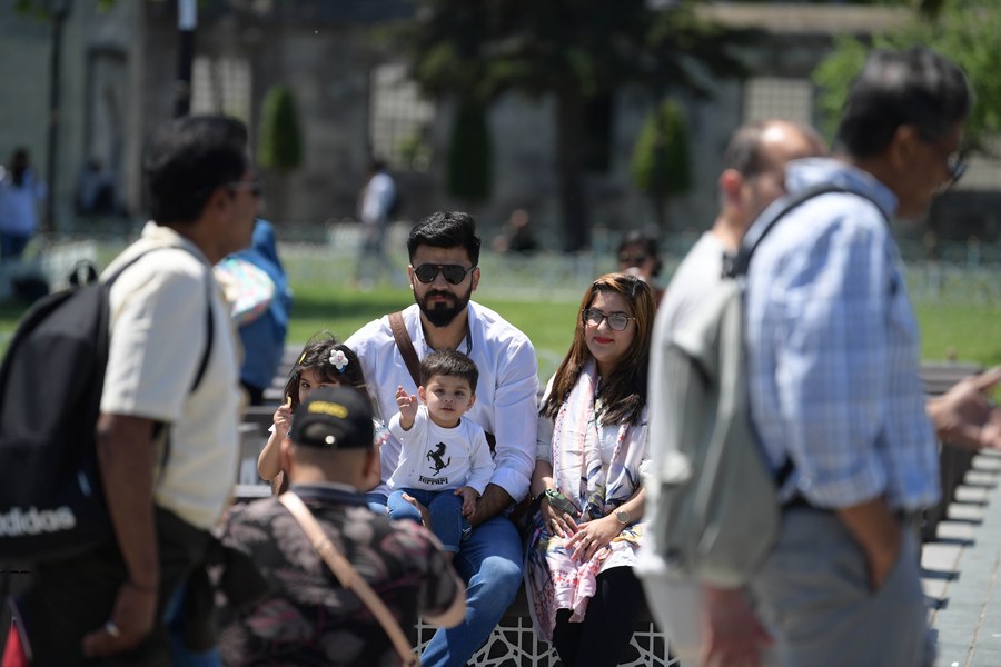 People visit Sultanahmet Square in Istanbul, Turkey, May 24, 2022. (Xinhua/Shadati)