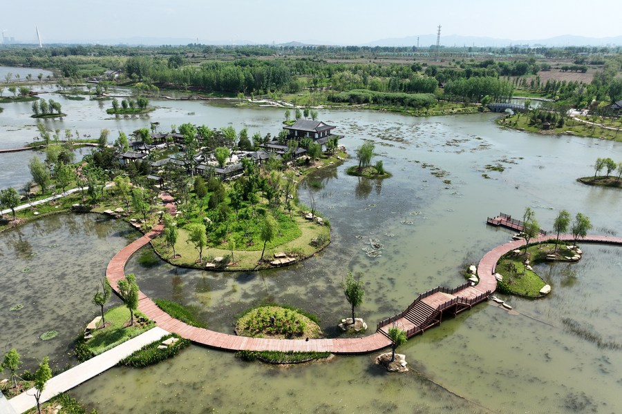 Aerial photo taken on May 13, 2022 shows a view of Zhangzehu national wetland park in Changzhi, north China's Shanxi Province. (Xinhua/Zhan Yan)