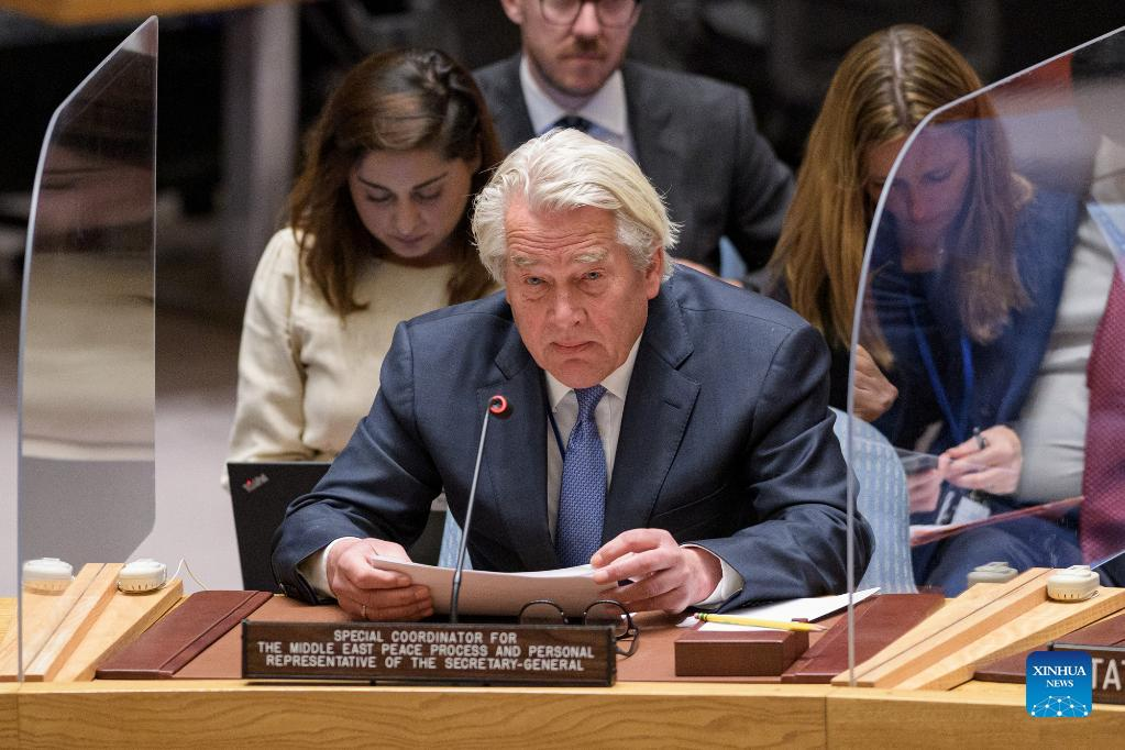 UN Special Coordinator for the Middle East Peace Process Tor Wennesland speaks at a Security Council meeting on the situation in the Middle East, including the Palestinian question, at UN Headquarters in New York on May 26, 2022. Wennesland on Thursday called for a better coordinated and strategic approach to the Israeli-Palestinian issue. (Manuel Elias/UN Photo/Handout via Xinhua)