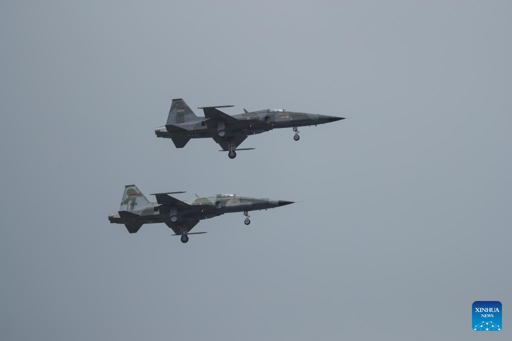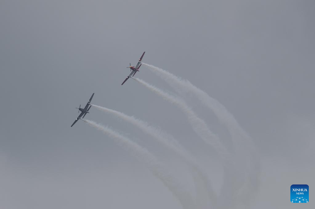 Military aircraft perform during the Museum Air Show Festival in Nairobi, Kenya, on May 28, 2022. (Xinhua/Long Lei)