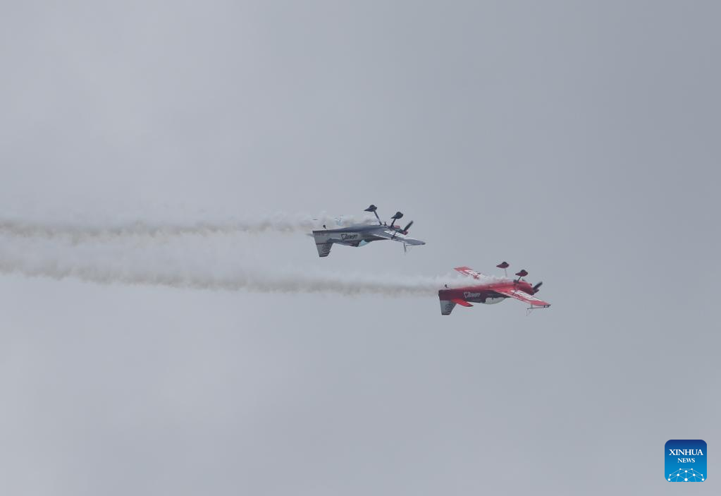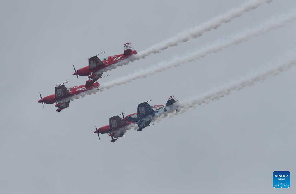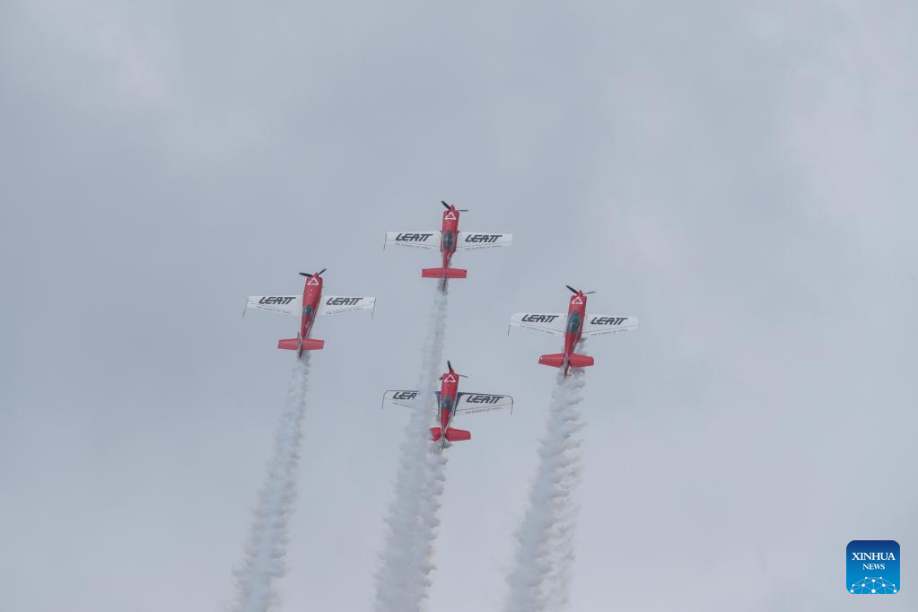 An aerobatic team performs during the Museum Air Show Festival in Nairobi, Kenya, on May 28, 2022. (Xinhua/Long Lei)