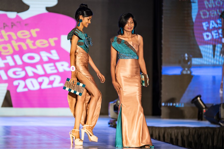 Models present creations during the Mother Daughter fashion show in Colombo, Sri Lanka, on May 29, 2022. (Xinhua/Tang Lu)