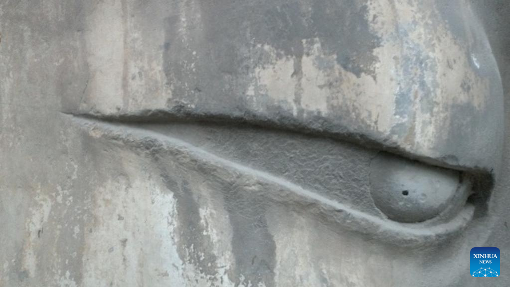 Undated file photo shows the right eye of a Bodhisattva statue at the Fengxiansi Cave of Longmen Grottoes in central China's Henan Province. (Longmen Grottoes Research Institute/Handout via Xinhua)