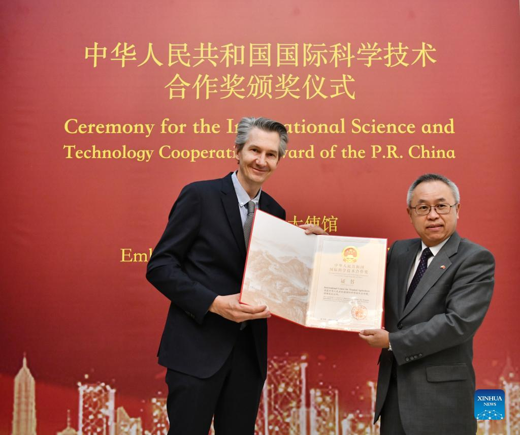 ROME, May 31 (Xinhua) -- The Chinese Embassy in Italy bestowed the 2020 International Science and Technology Cooperation Award to the International Center for Tropical Agriculture (CIAT) here on Tuesday.