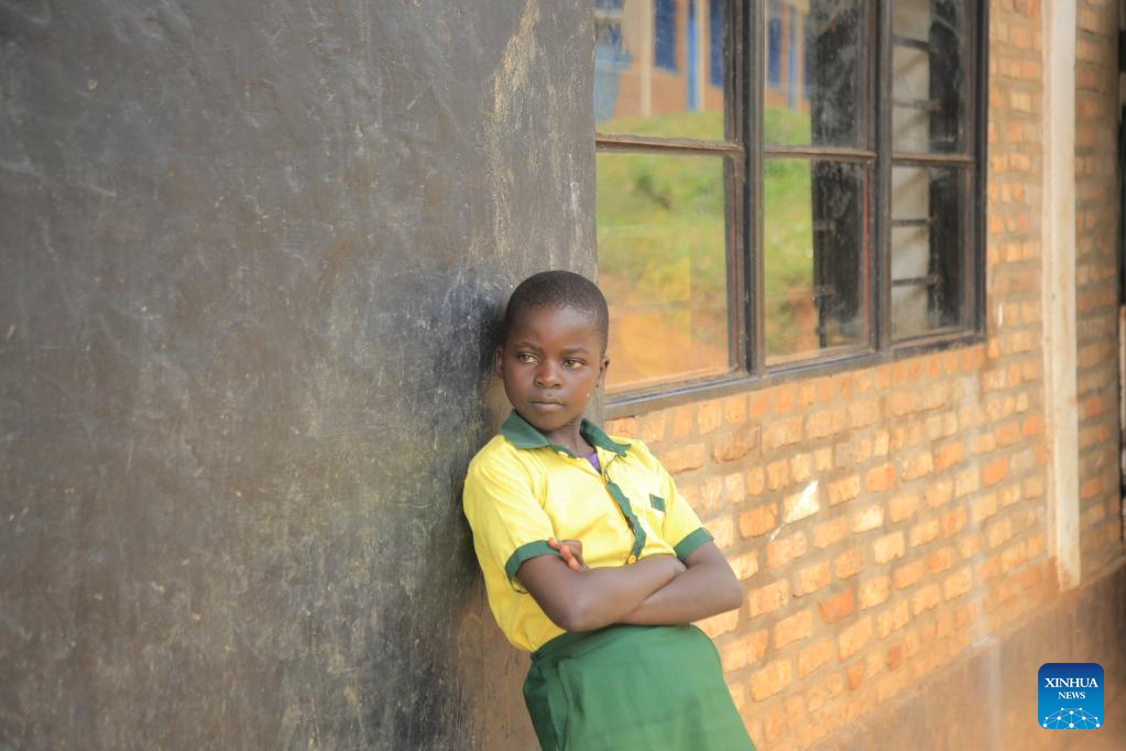 Stella Ishimwe stands outside her classroom at Tanda primary and secondary school (GS Tanda) in Rwanda, May 27, 2022. (Xinhua/Ji Li)