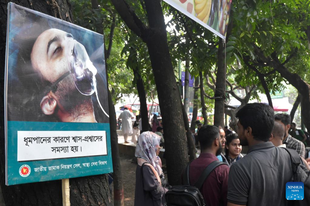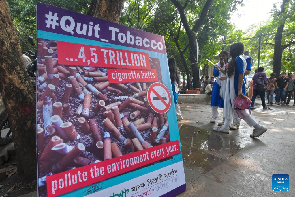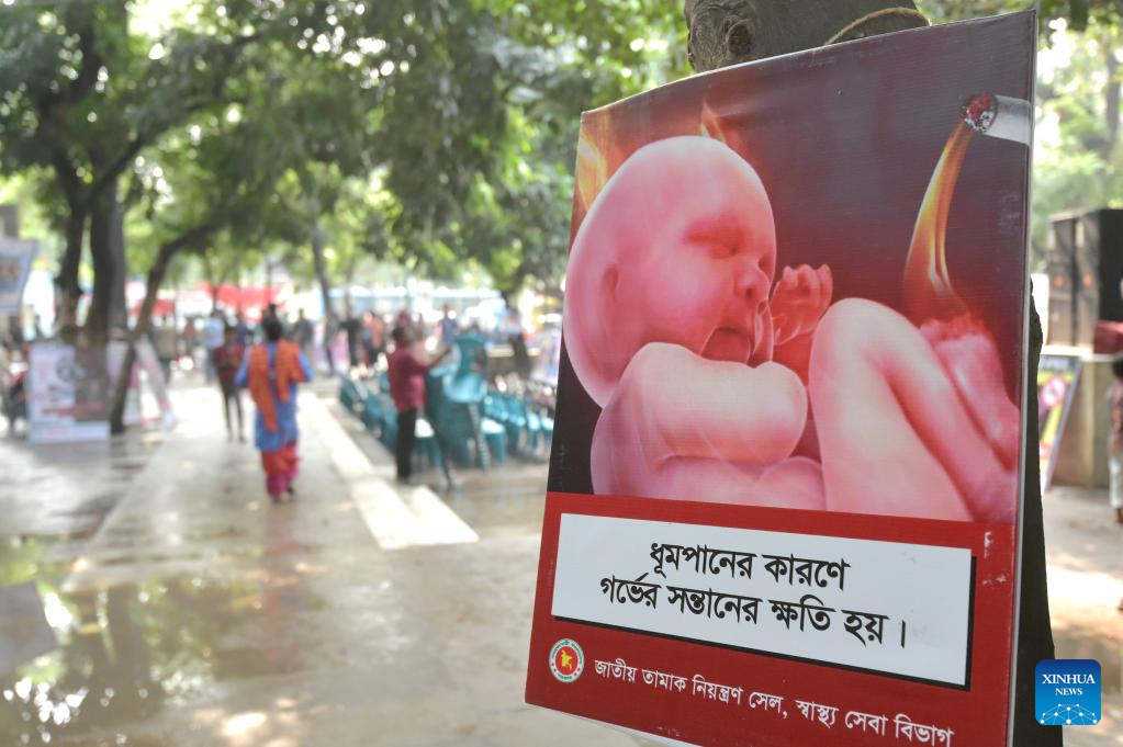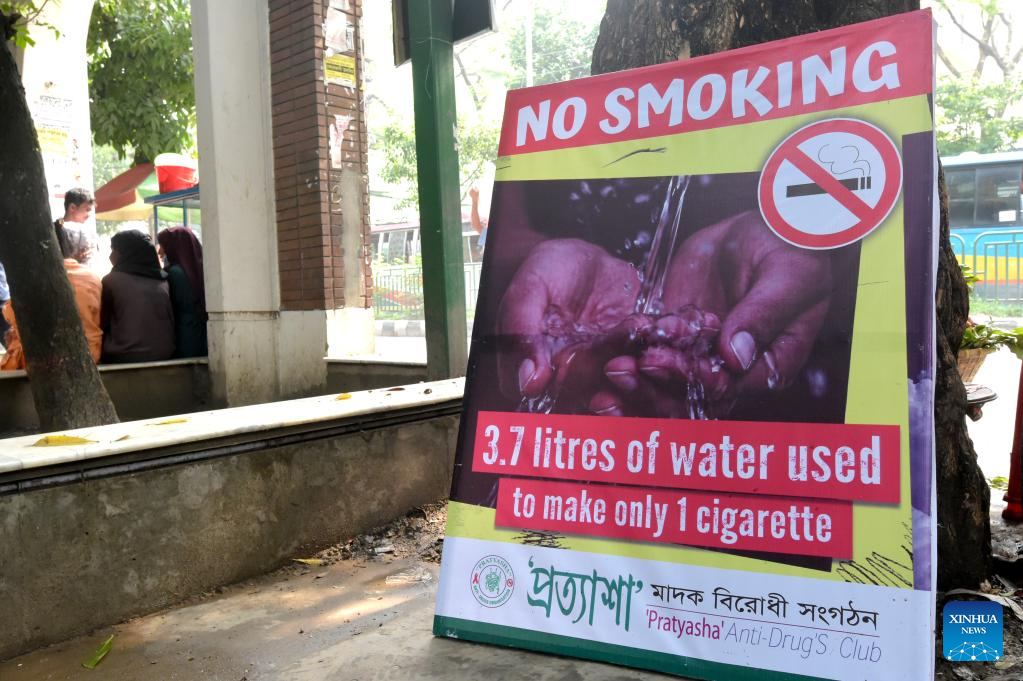 An anti-tobacco awareness poster is displayed during the World No Tobacco Day in Dhaka, Bangladesh, on May 31, 2022. The World No Tobacco Day is observed every year on May 31. This year's theme "Tobacco: Threat to our environment" gives people one more reason to quit by demonstrating the environmental impacts of tobacco. (Xinhua)