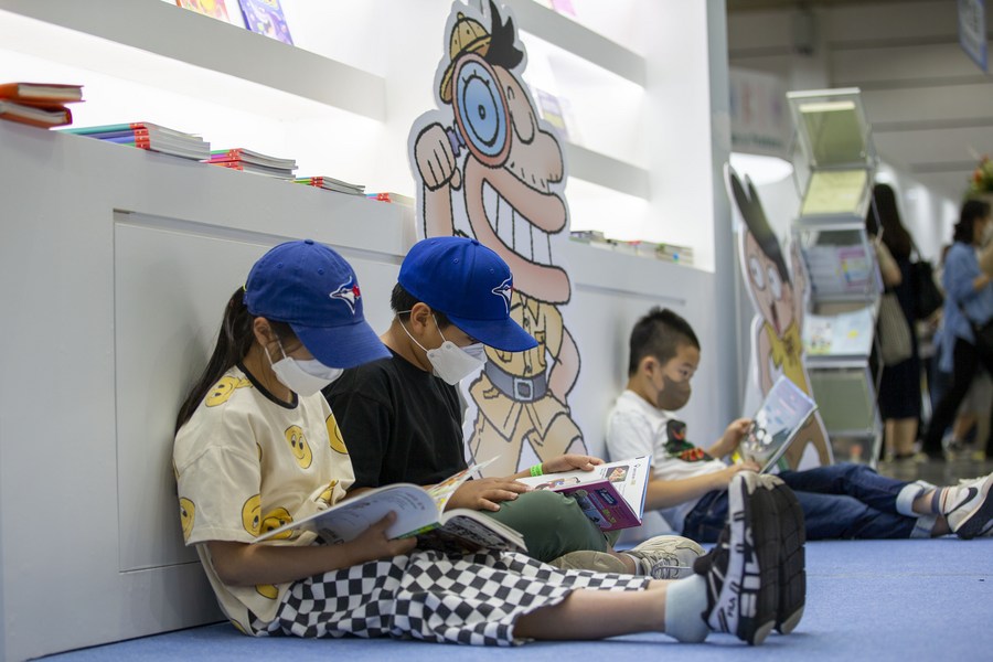 Children read books at the Seoul International Book Fair in Seoul, South Korea, June 1, 2022. (Xinhua/Wang Yiliang)