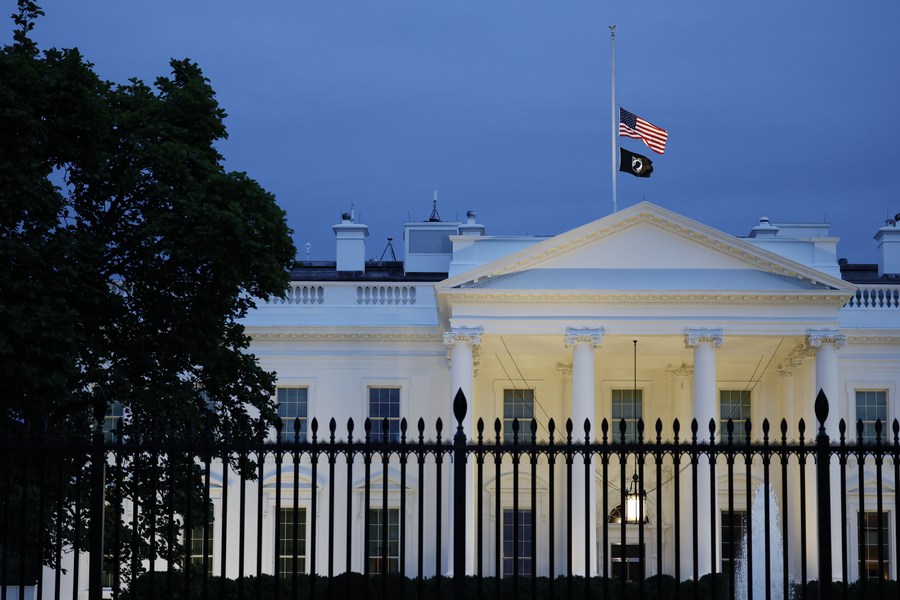 The U.S. flag flies at half-staff on top of the White House in Washington, D.C., the United States, on May 24, 2022. (Photo by Ting Shen/Xinhua)