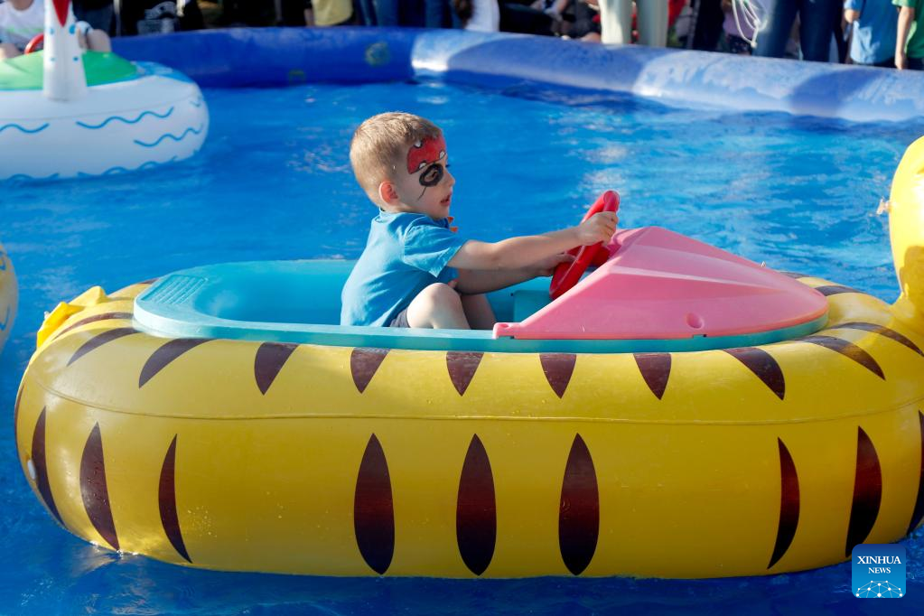 Children play during an event marking International Children's Day in Bucharest, Romania, on June 1, 2022. (Photo by Cristian Cristel/Xinhua)