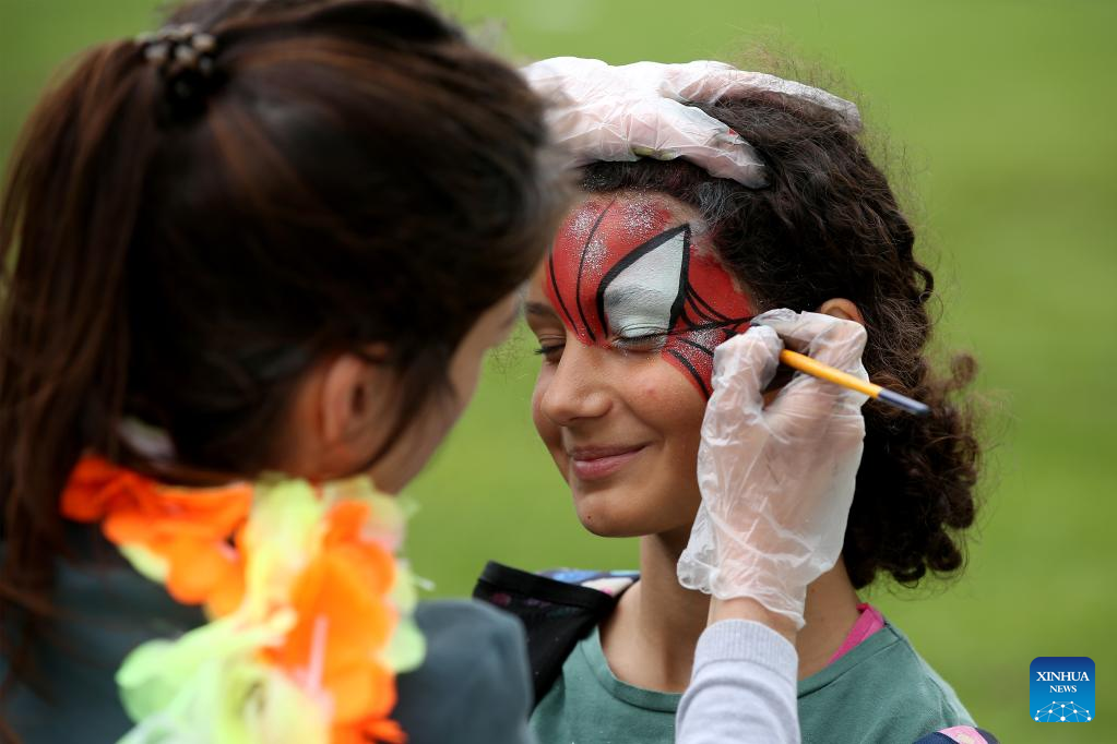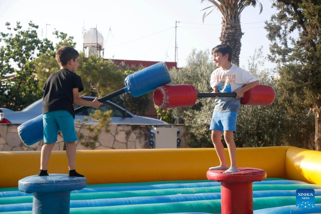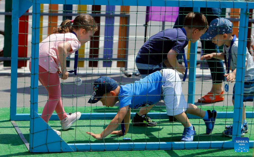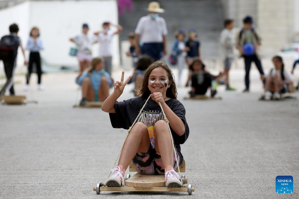 (220601) -- GERI (CYPRUS), June 1, 2022 (Xinhua) -- Children play at a park during an event to celebrate International Children's Day in Geri, ten kilometers southeast of Nicosia, Cyprus, on June 1, 2022. (Photo by George Christophorou/Xinhua)