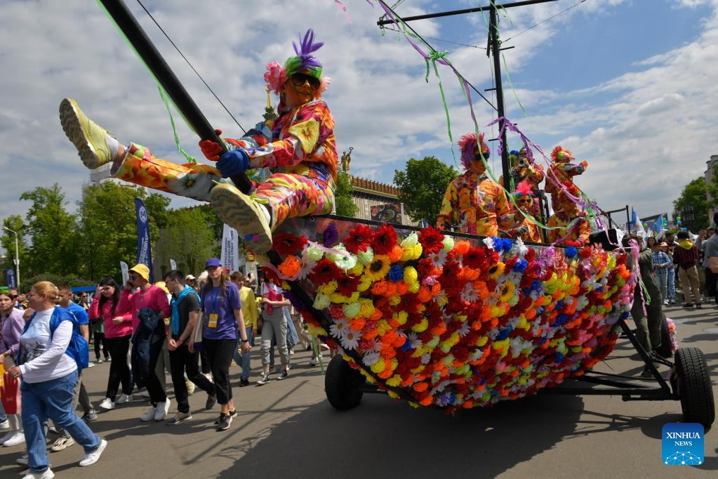 People take part in a parade during the celebration of the International Children's Day in Moscow, Russia, on June 1, 2022. (Xinhua/Alexander Zemlianichenko Jr)
