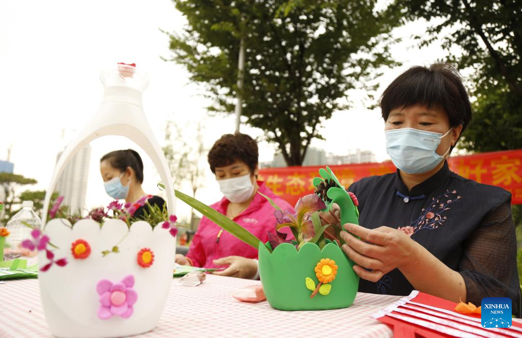 Residents make artwork with discarded articles in Xiangdu District of Xingtai, north China's Hebei Province, June 4, 2022. Various events are held to raise people's awareness of environmental protection in China ahead of the World Environment Day, which falls on June 5. (Photo by Zhang Chi/Xinhua)